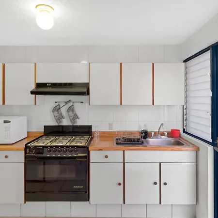 Deze accommodatie heeft een complete keuken met onder andere een magnetron en een koelkast. Dit appartement is vrij dicht bij Ajonjoli, waar u de Franse keuken zult treffen. Boliche busstation ligt vrij dicht bij Ms Exclusiva Suite Alberca Bernardo Quintana 12B.